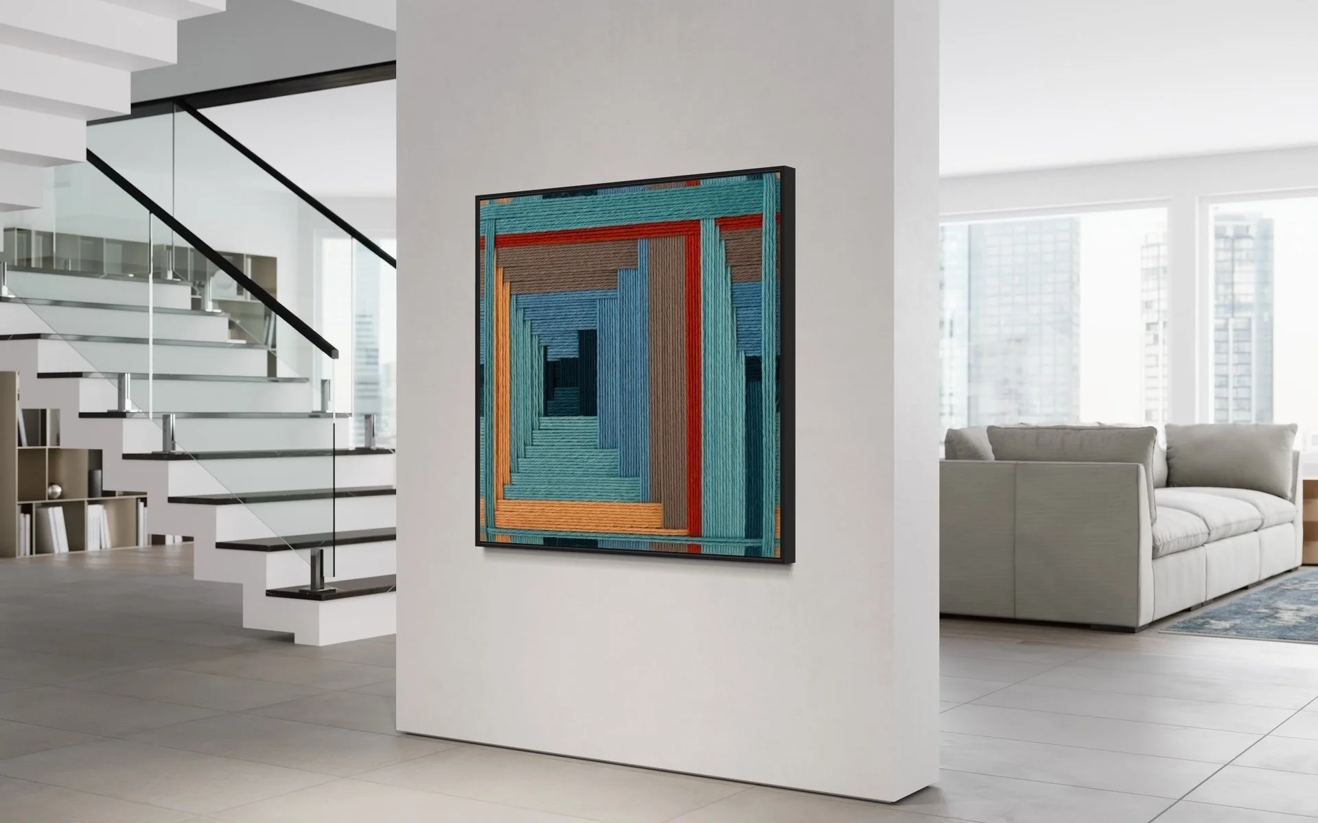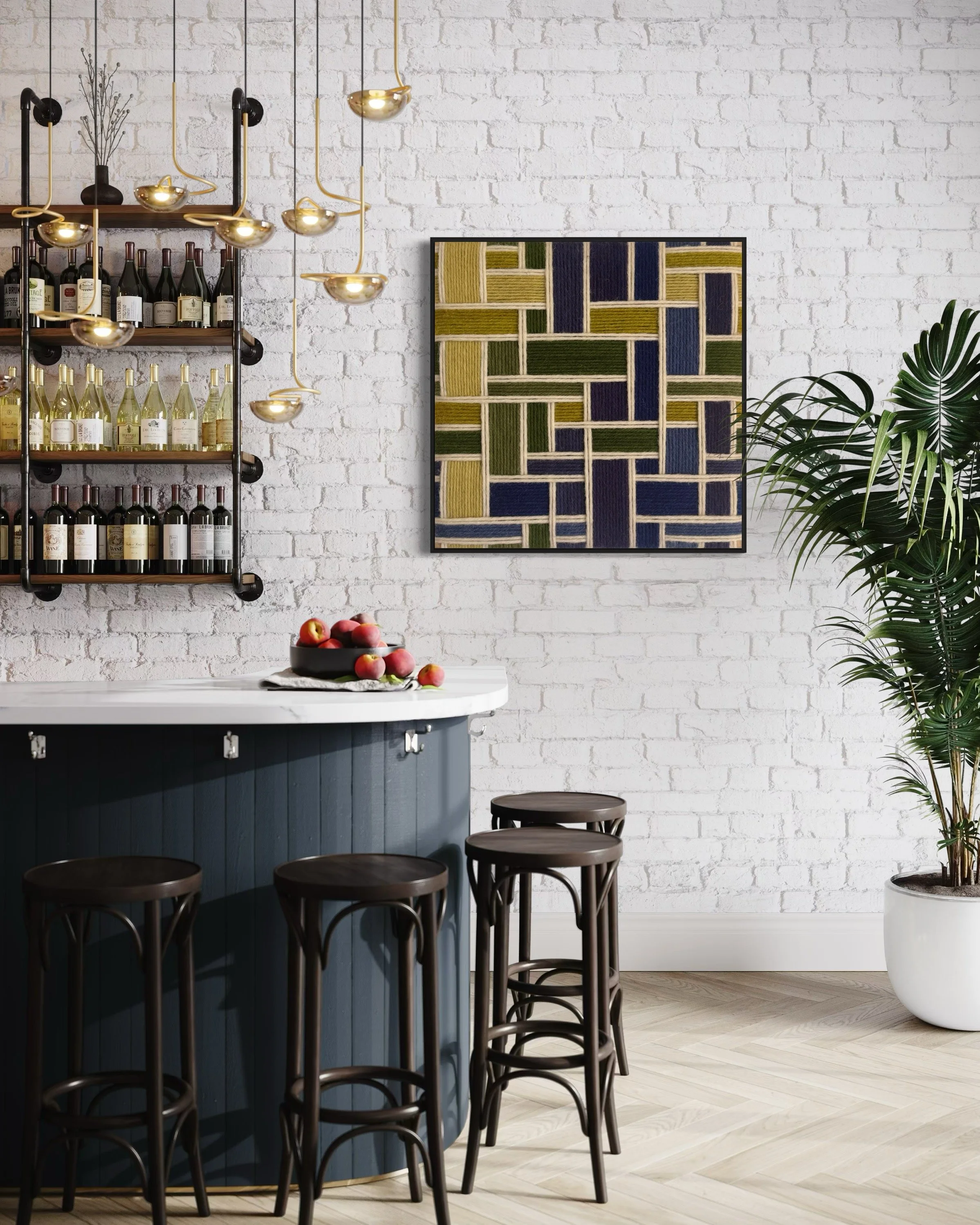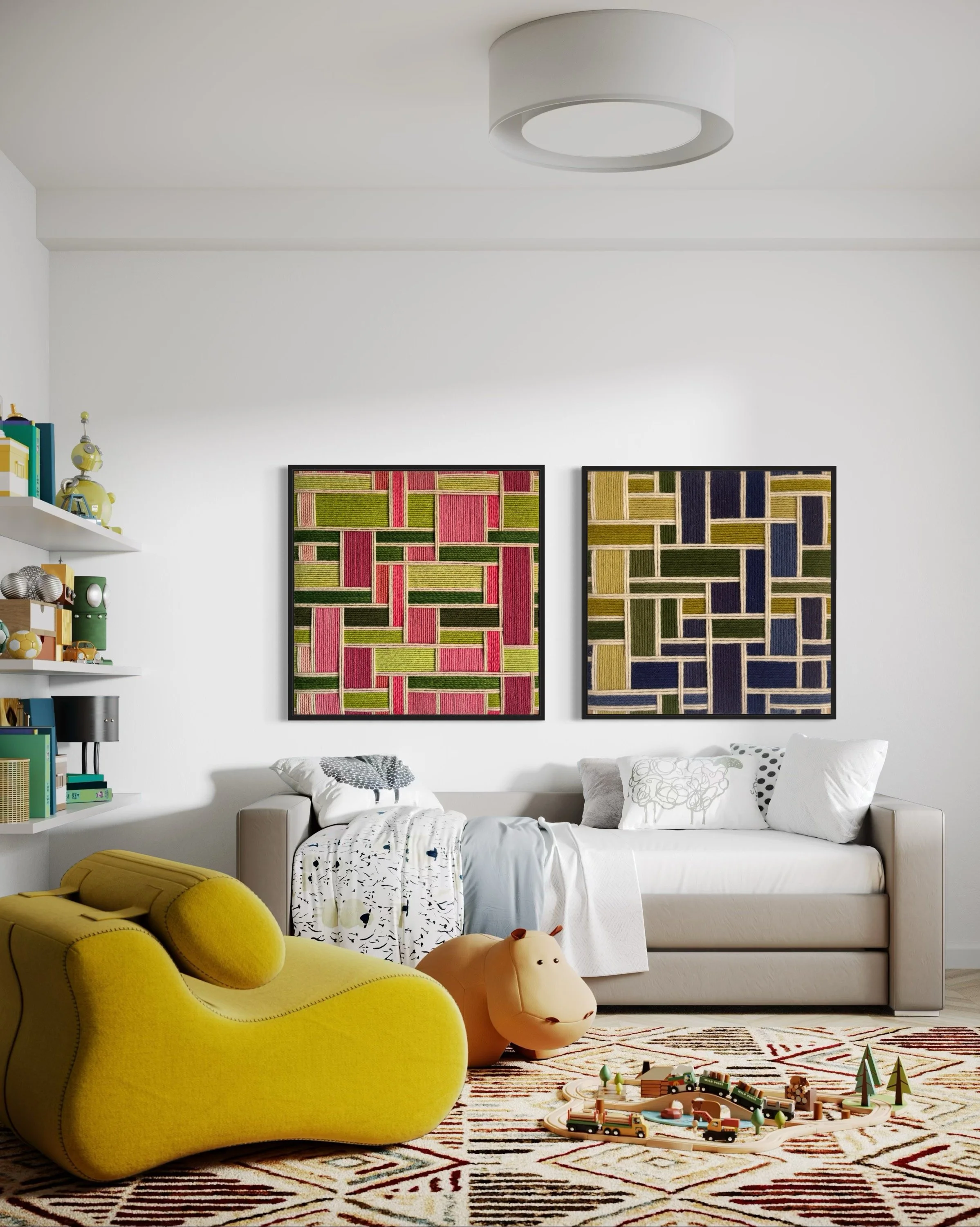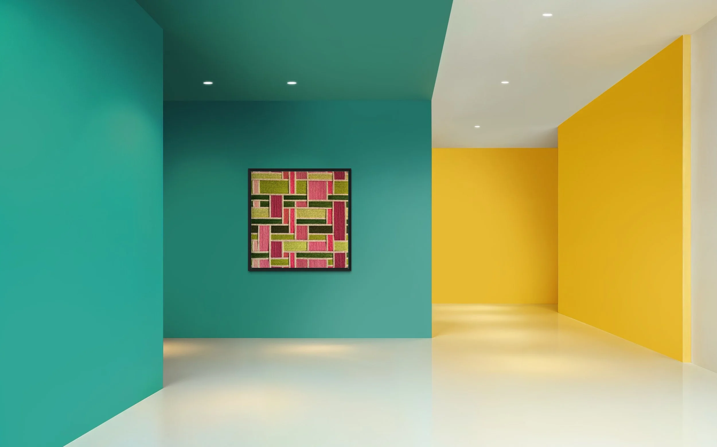 Here are the most recent designs by Kate, coupled with just a few of the endless design applications. Each and every one of these designs are available for custom order. Each design has a color palette that is fully customizable and each work of art is available in sizes up to 84 in x 84 in (213 cm x 213 cm).