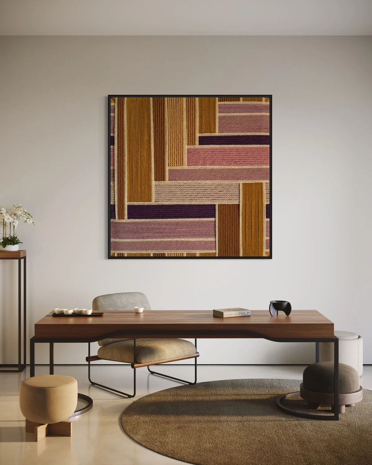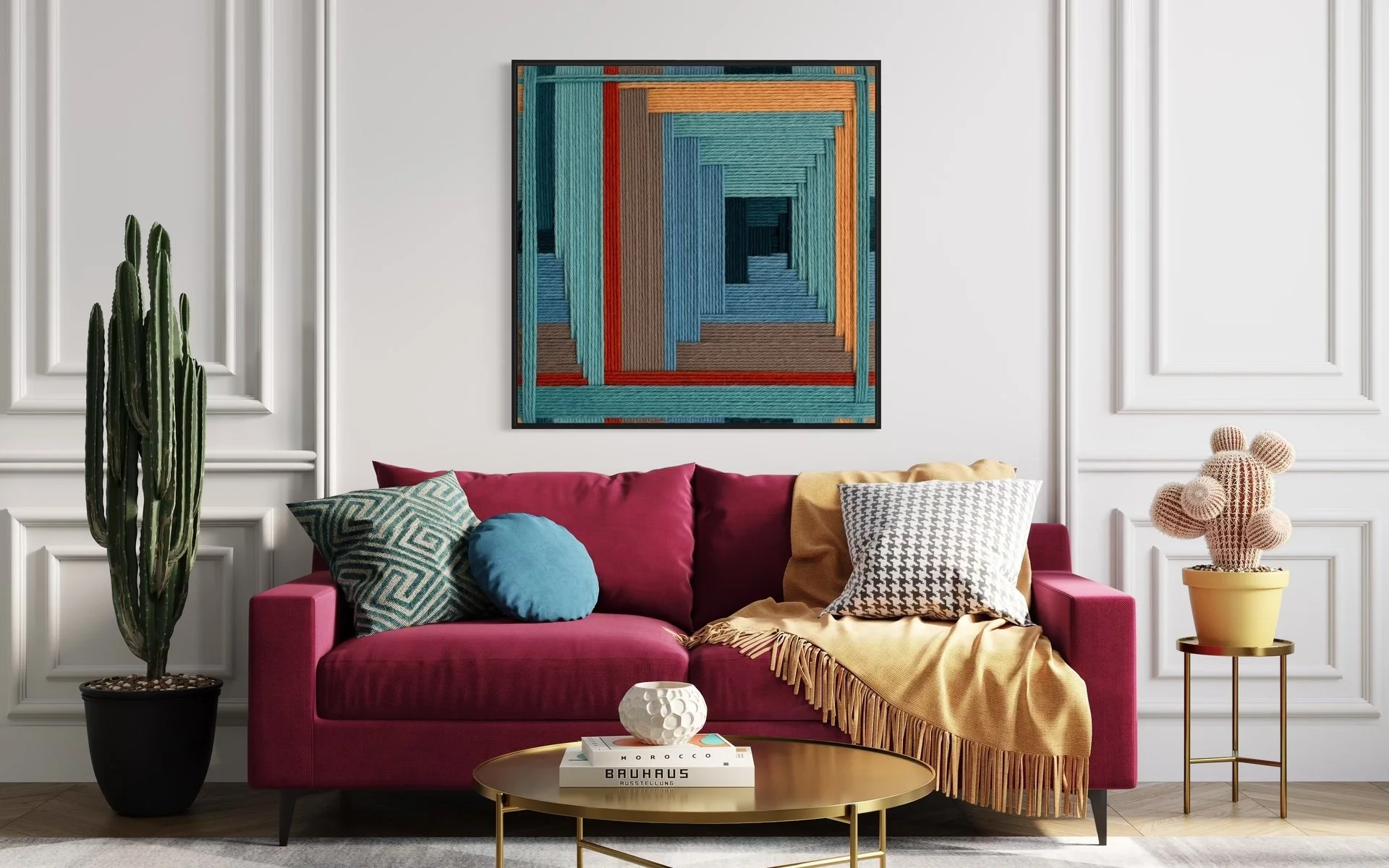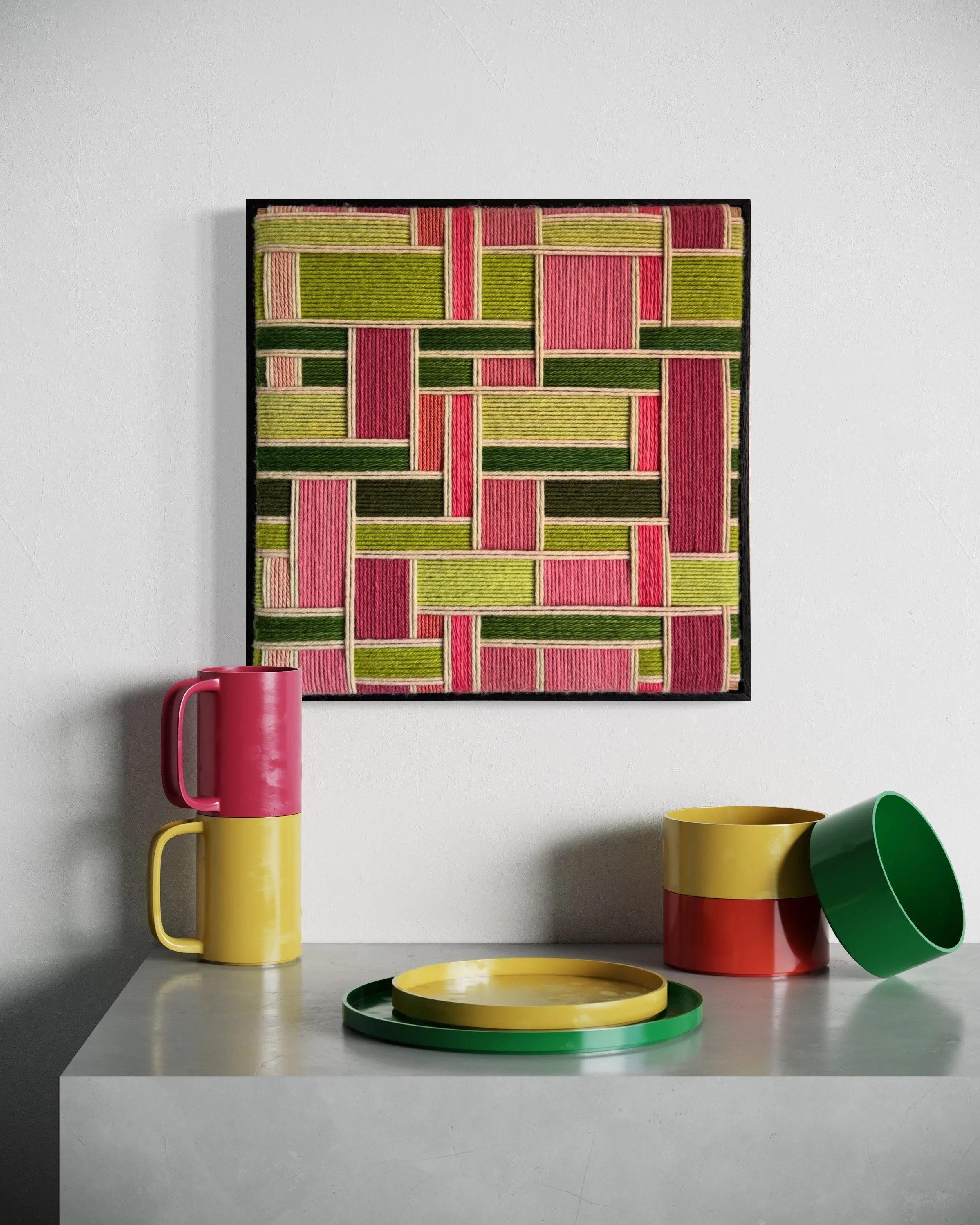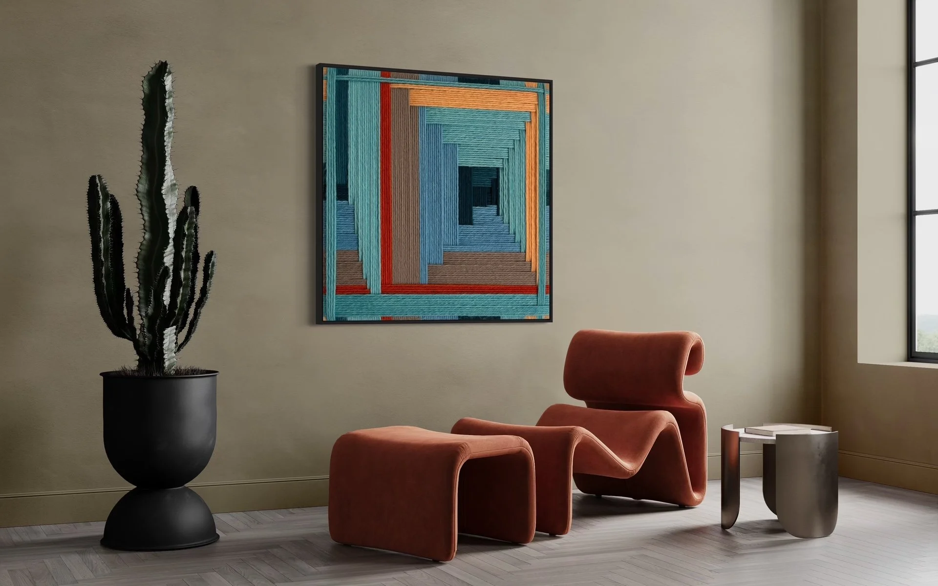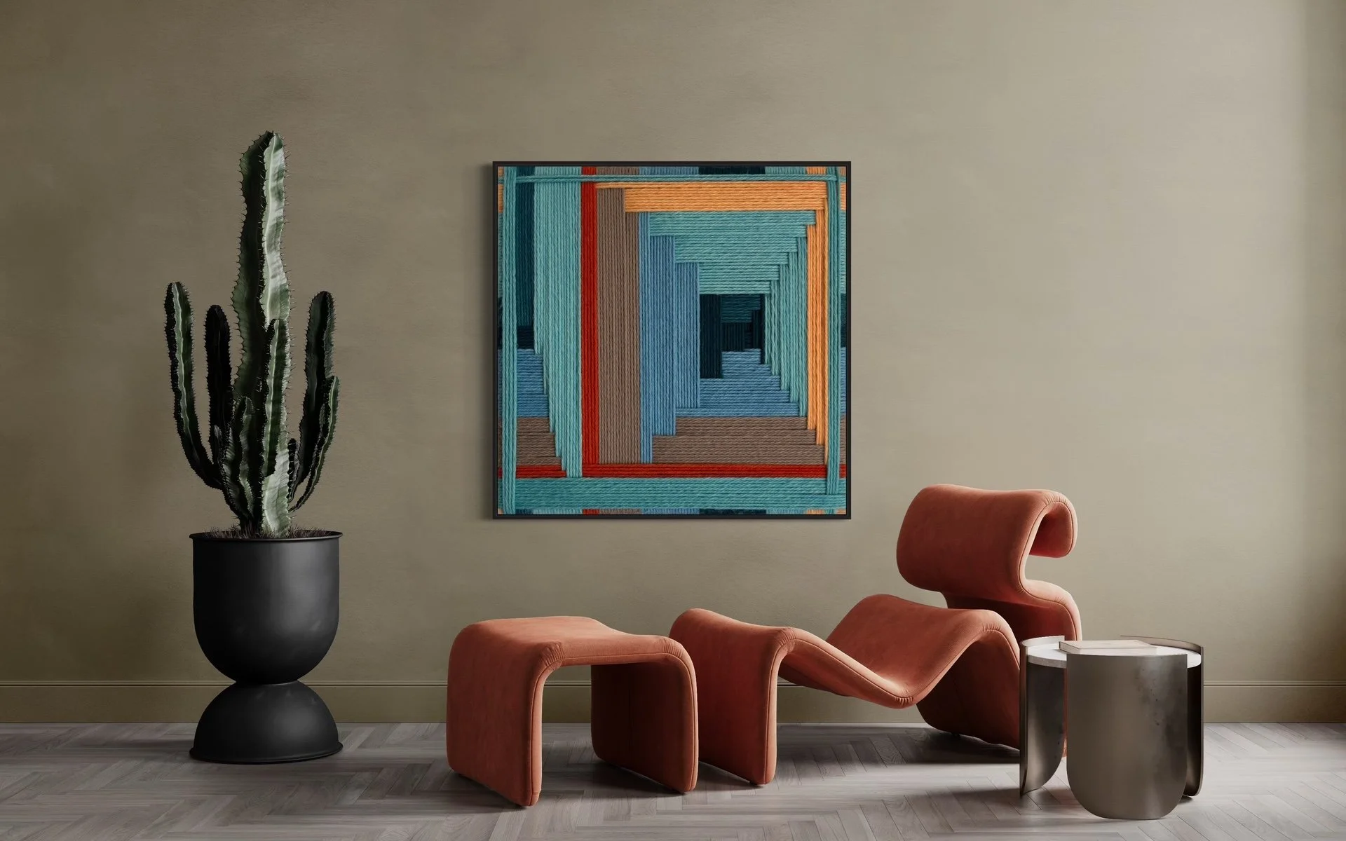 Here are the most recent designs by Kate, coupled with just a few of the endless design applications. Each and every one of these designs are available for custom order. Each design has a color palette that is fully customizable and each work of art is available in sizes up to 84 in x 84 in (213 cm x 213 cm).